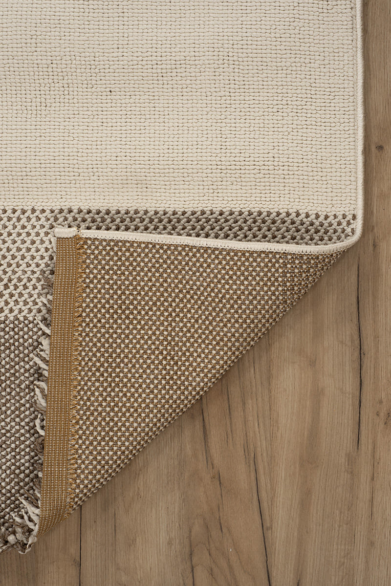 שטיח לופ PLZ-403 לבן בז' עם פרנזים