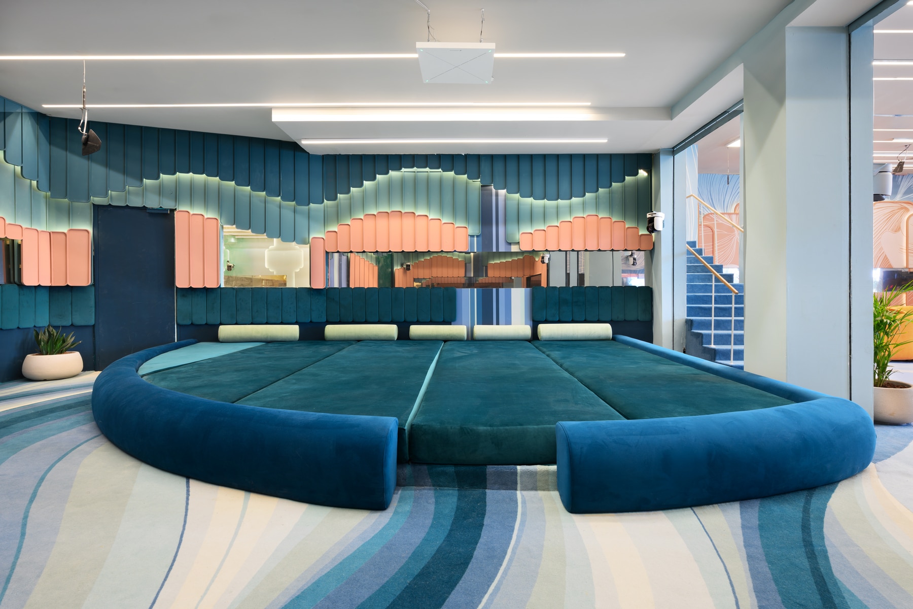 פינת האוכל והלאונג' מעוצבות בשטיחים עם עיצוב דינמי בהשראת תנועת גלים רכה. הקווים האובאליים המעוגלים יוצרים תחושת זרימה והרמוניה בחלל. פלטת הצבעים כוללת גווני כחול וטורקיז פטרול, המשתלבים באופן מדויק עם גווני הקירות ומעשירים את המרחב בתחושת רוגע. מעבר לאסתטיקה המרשימה, השטיחים פרקטיים במיוחד ומתאפיינים באריגה צפופה המאפשרת תחזוקה נוחה וניקוי קל.