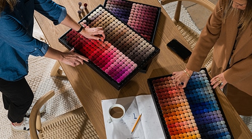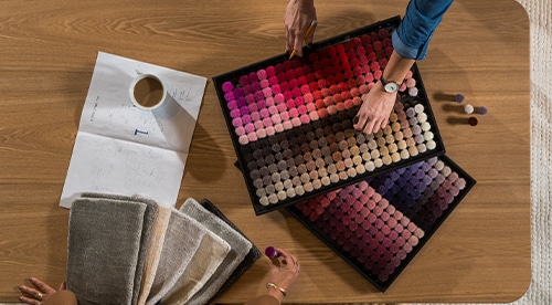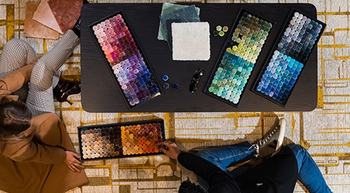 האם אתם רוצים שטיח בצבע אחיד, בסגנון דגרדה (צבע שמשתנה מכהה לבהיר לאורך השטיח) או בכמה צבעים שונים? באיזה סדר תרצו להניח אותם? האם תרצו ליצור בעזרתם דוגמה או מוטיב מסוים? תוכלו לבחור את הצבעוניות המועדפת עליכם מתוך מבחר עצום של פלטות צבעים.