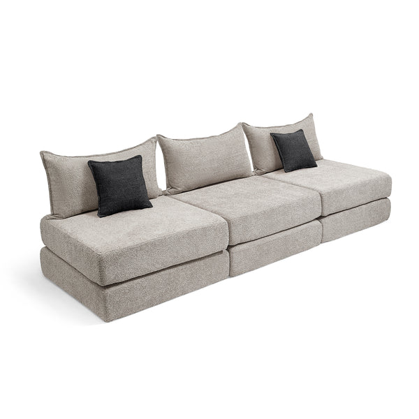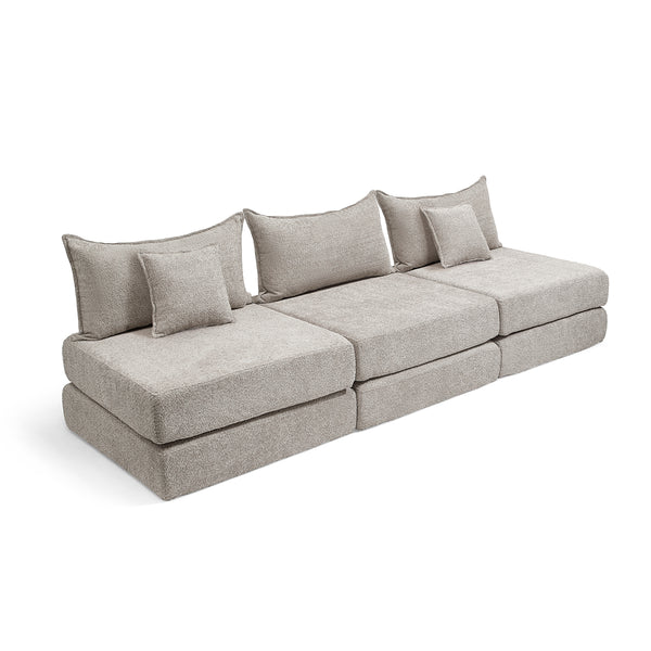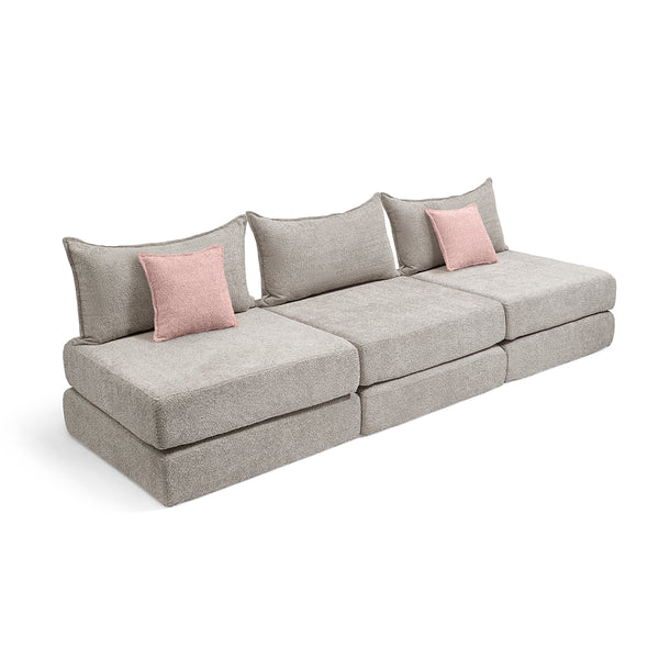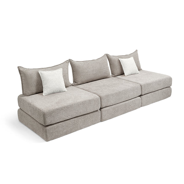 צ'יל שלישייה מבד בוקלה – ספת לאונג' מודולרית אפור בהיר