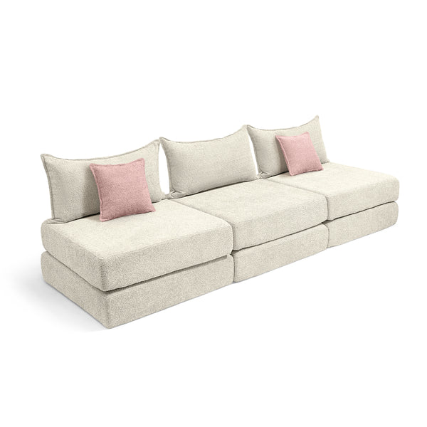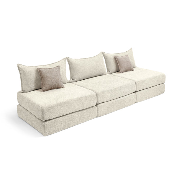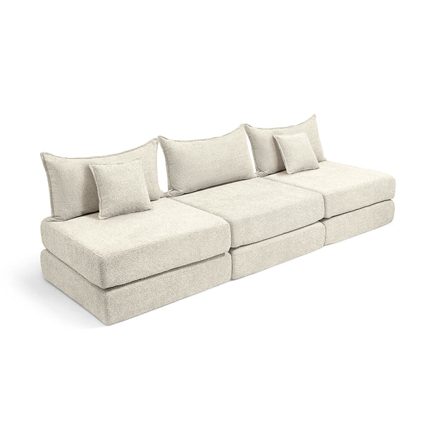 צ'יל שלישייה מבד בוקלה – ספת לאונג' מודולרית שמנת