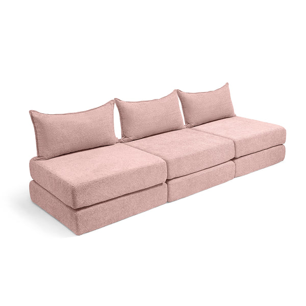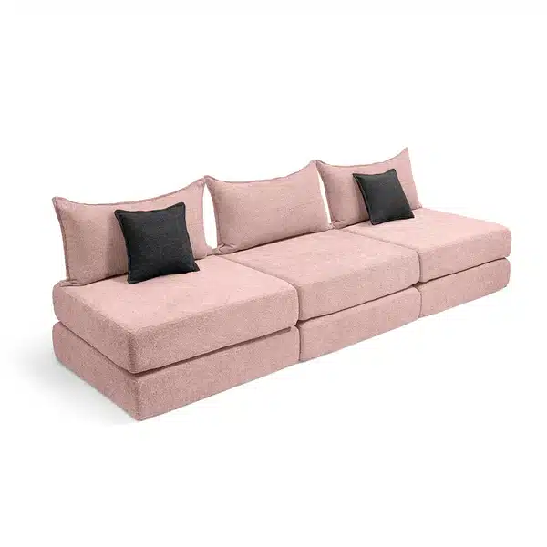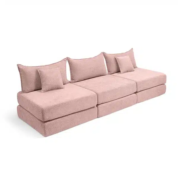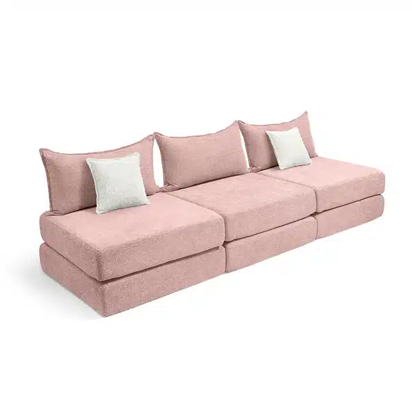 צ'יל שלישייה מבד בוקלה – ספת לאונג' מודולרית ורוד עתיק