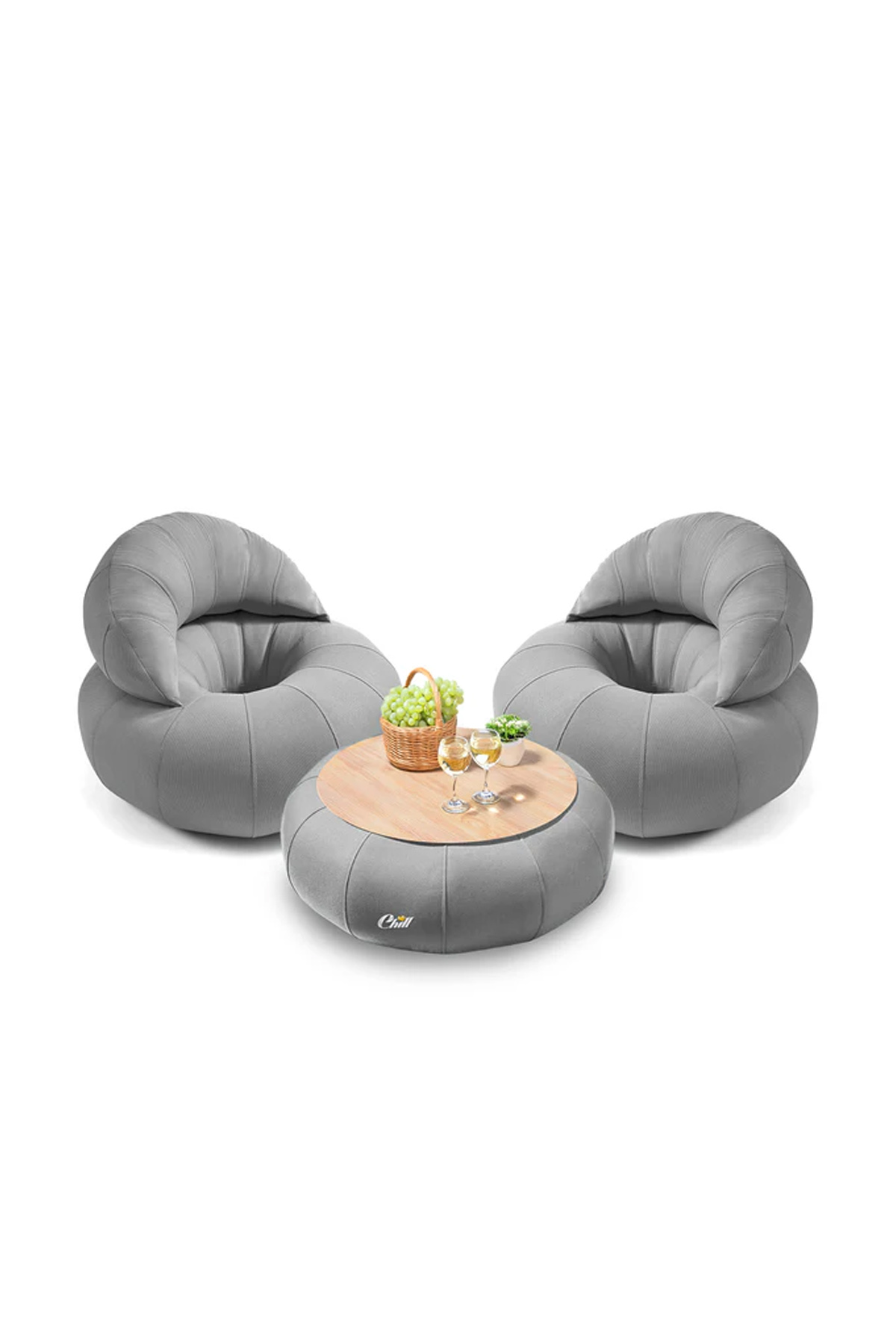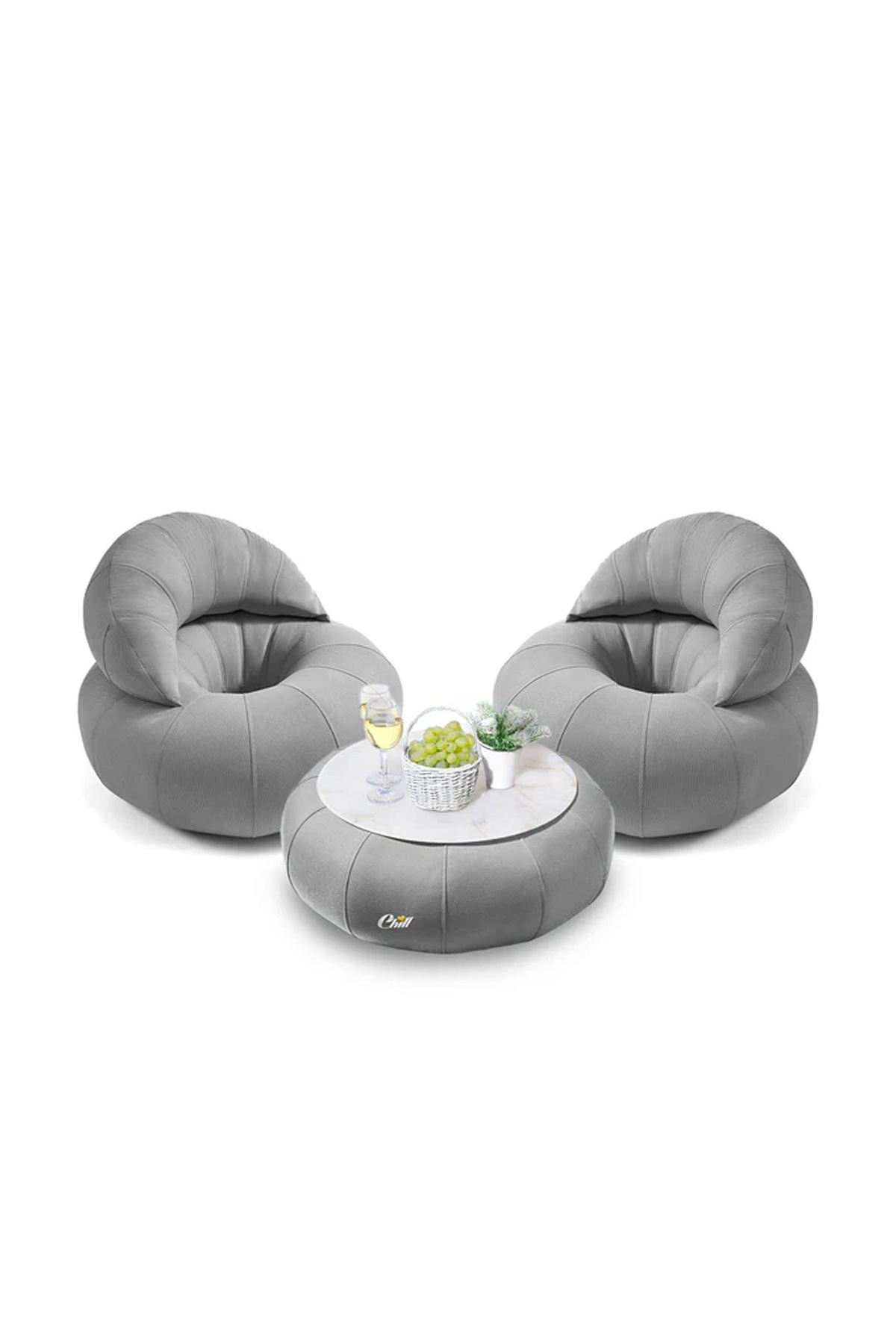 חבילת כורסאות קרואסון עם שולחן דונאט XL ומגש לבחירה אפור בהיר