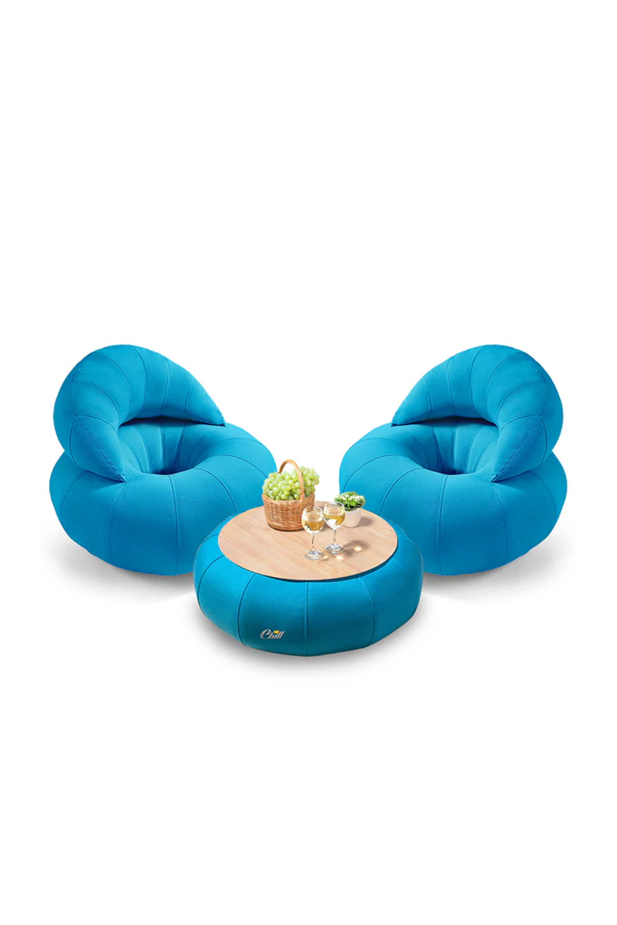 חבילת כורסאות קרואסון עם שולחן דונאט XL ומגש לבחירה טורקיז