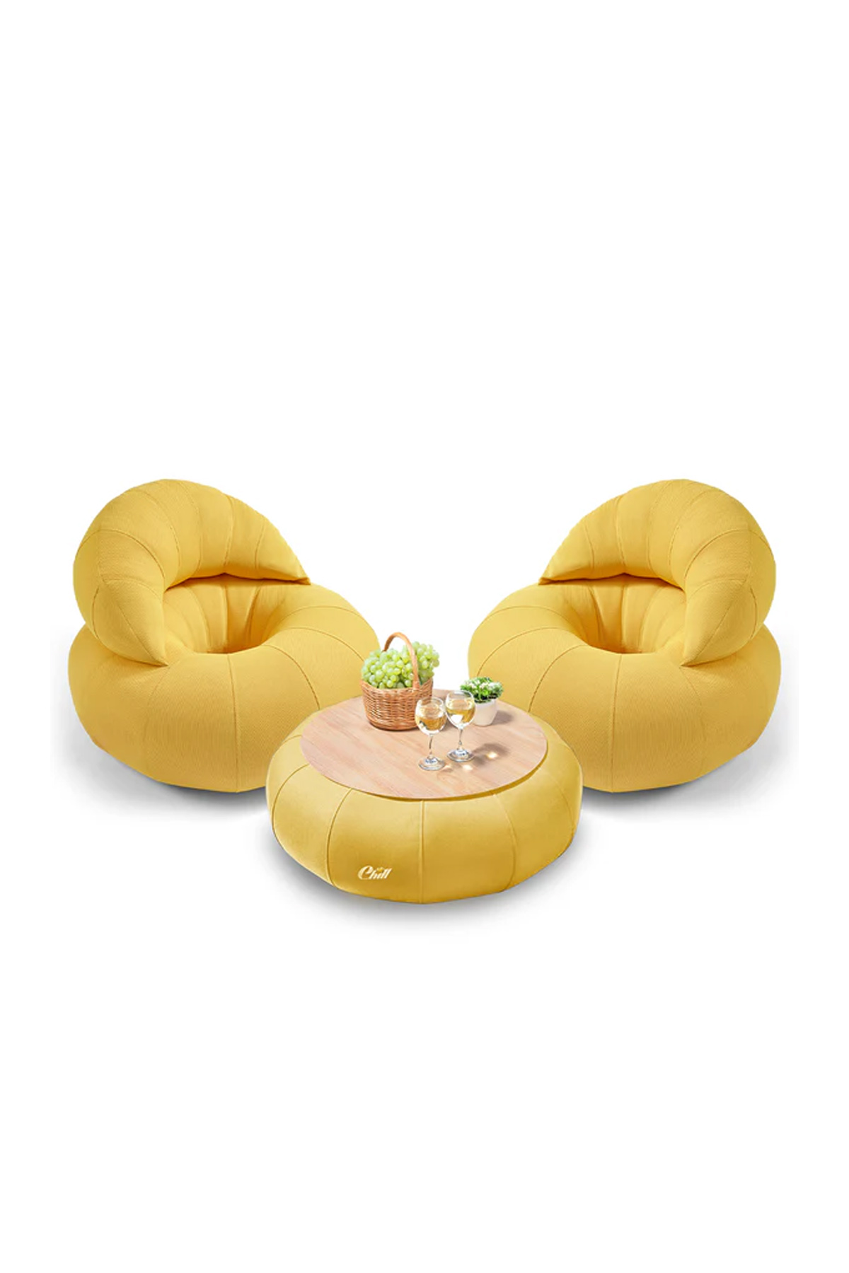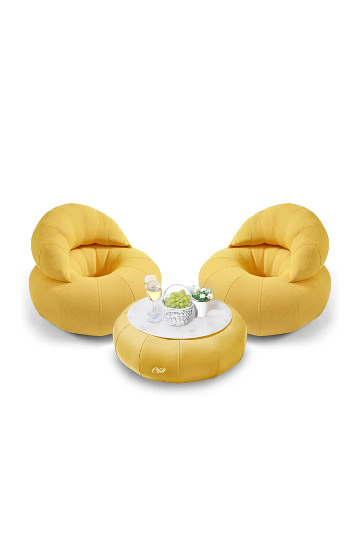 חבילת כורסאות קרואסון עם שולחן דונאט XL ומגש לבחירה צהוב