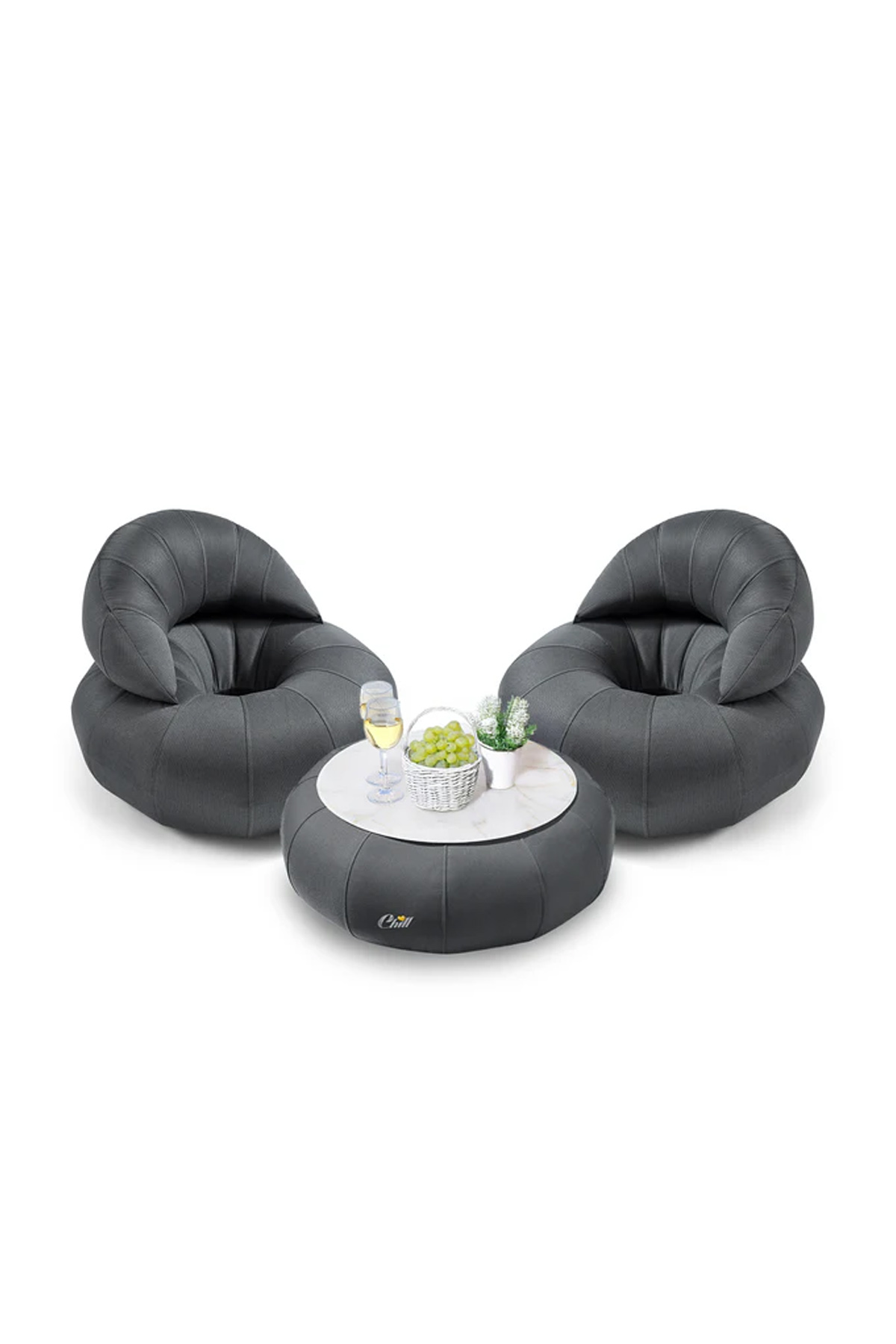 חבילת כורסאות קרואסון עם שולחן דונאט XL ומגש לבחירה אפור כהה