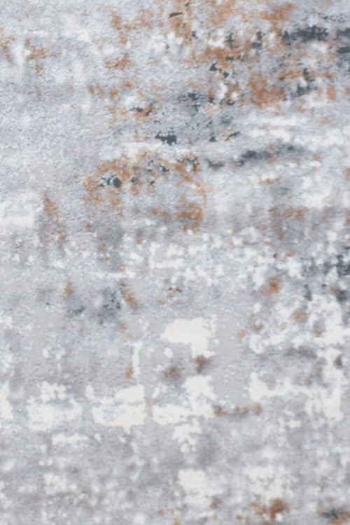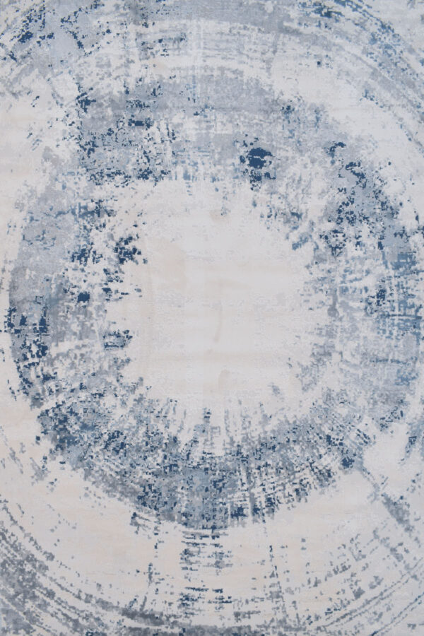 שטיח אפור עגול בעיצוב מודרני מופשט, המשלב מספר גוונים ניטרליים שיעשירו כל פינת איפור או כתיבה שיש לכם בבית.