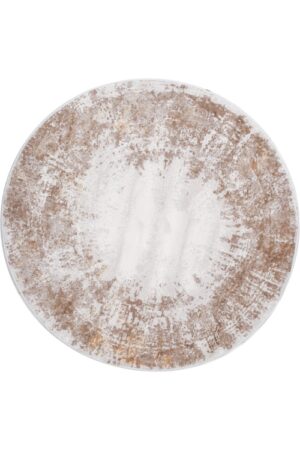 שטיח גאיה עגול בעיצוב מודרני גיאומטרי, בדוגמת עיגול במרכז השטיח במראה משופשף, העשוי סיבי פוליאסטר ופוליפרופילן בגווני חום בהירים וכהים, על בסיס שמנת בהיר שייצרו מראה עשיר וחמים בפינת חדר השינה שלכם.