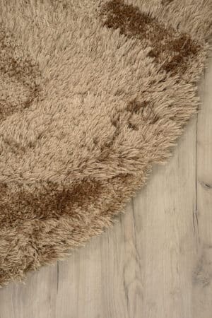 שטיח טאץ גלים בז' עגול נארג בעבודת יד מיוחדת תוך שימוש בסיבי צמר איכותיים בשילוב פוליסאטר סינטטי המקנה מגע רך, פרוותי ומפנק במיוחד.